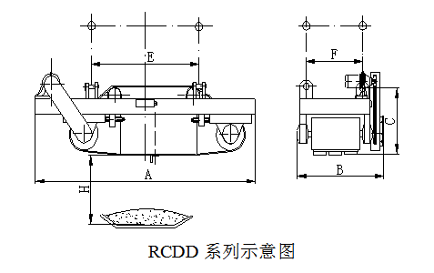 四、RCDD系列懸掛帶式自冷電磁除鐵器主要技術參數、外形尺寸 執行標準:JB/T7689